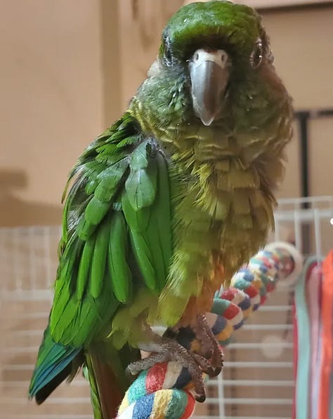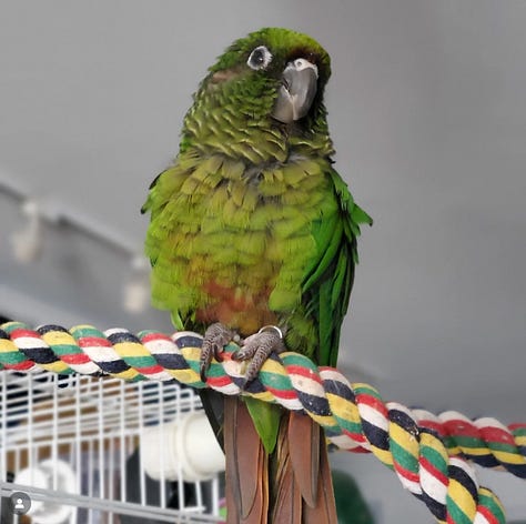 Today is a hard day for me. My apartment is his home more than mine. I have decided to leave his cage up as that is his space - though he never once sat inside it (all the perches are on the outside). It shall be a piece of modern art and a statue to his memory. I may even put his pic inside. Does that sound crazy?