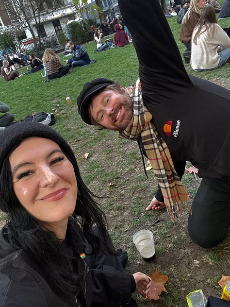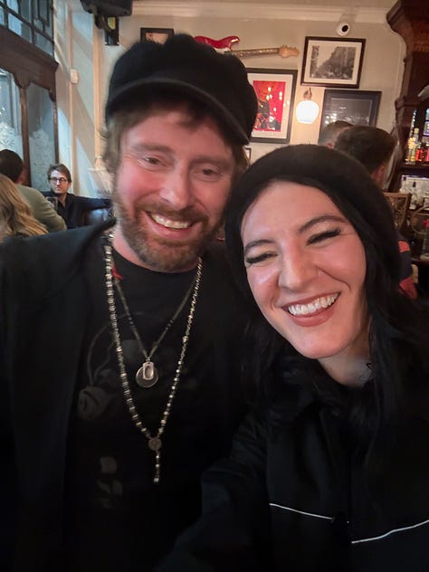 Good morning! Happy Friday :) I am writing to you from the Cafe Car on the Amtrak train to Washington, D.C., on my way to meet my mom and Tony for an event this evening at the Lincoln Theatre, celebrating Bread of Angels. I’m looking forward to seeing them and performing, to meeting my internet pal Wes Parker in person for the first time, to seeing Alexi Munoz from Donkeys & Scooters, who was my merch/souvenirs warrior at the Anthem back in November. I’m excited because today is the birthday of one of my dearest friends, William Wildblood, because today is the last new moon of 2025, and I’m especially excited because today is my 2 year anniversary of being on Substack with you all. It’s my own personal milestone anniversary, but really it’s an anniversary for us, and that makes it all the more special to me. <3