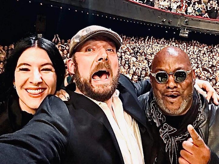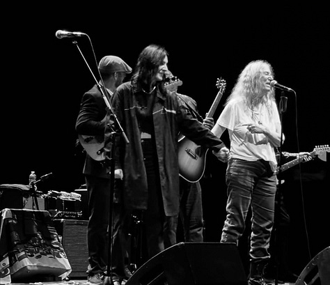 The Olympia show last night was met with friends from nearby and all over, some unexpected and others great surprises, including Tomás Doncker, who we know from NYC, but who now lives in London. He joined the stage for People Have the Power, which he also recorded himself a few years ago in his own unique vision. You can see the video below.