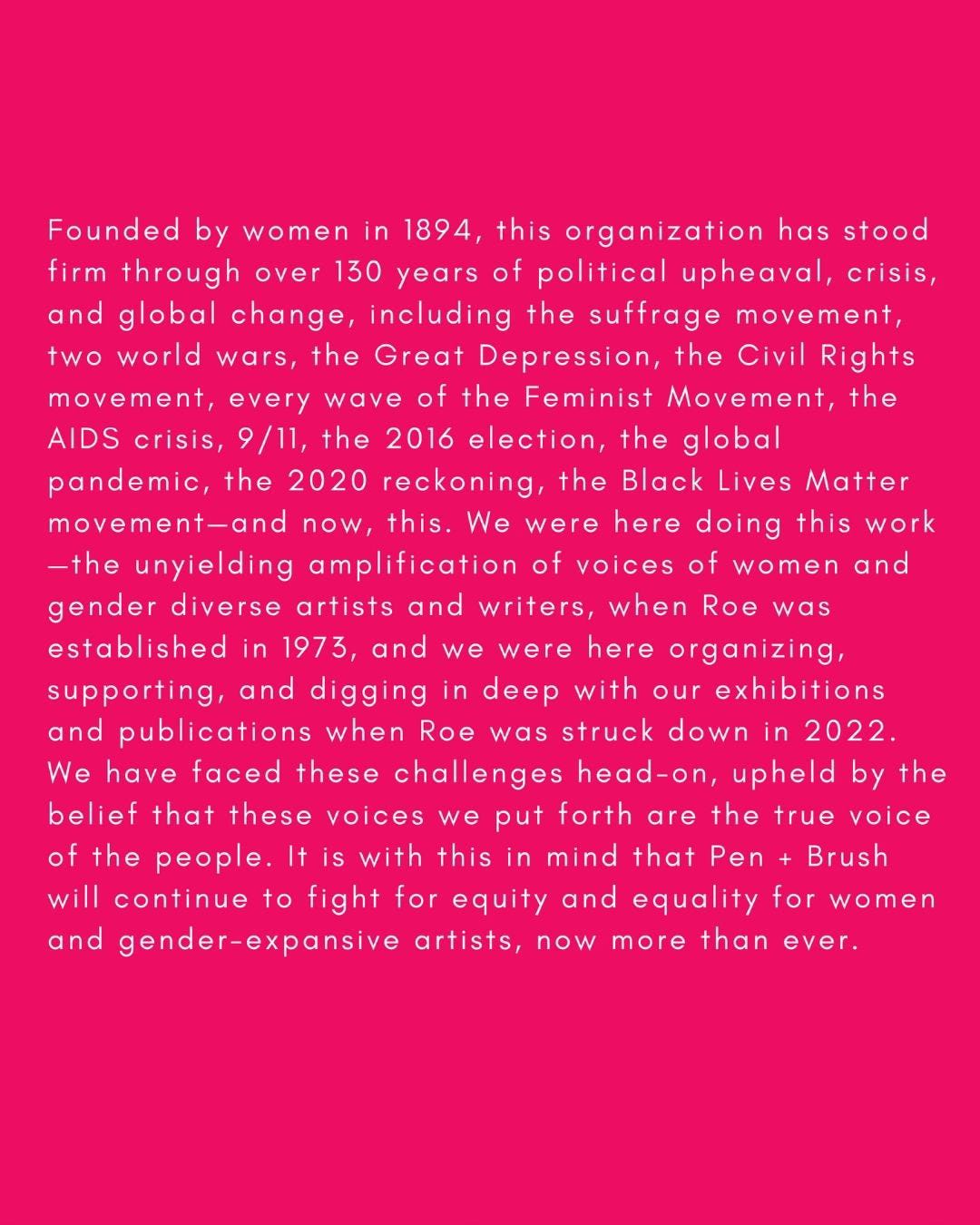 “For over 131 years, Pen & Brush has been the only international non-profit organization providing a platform to showcase the work of professional emerging and mid-career women and gender expansive artists and writers to a broader audience.”